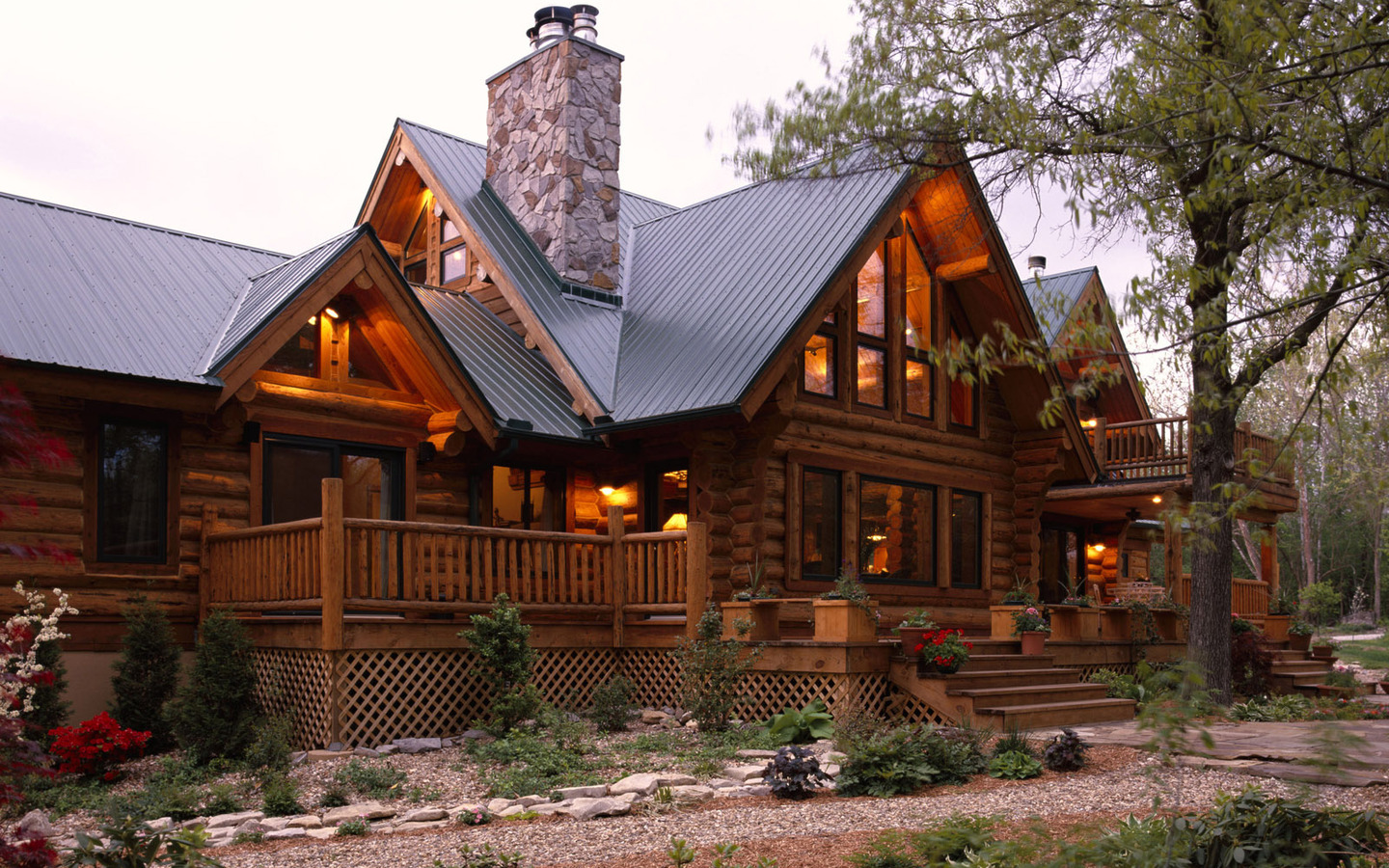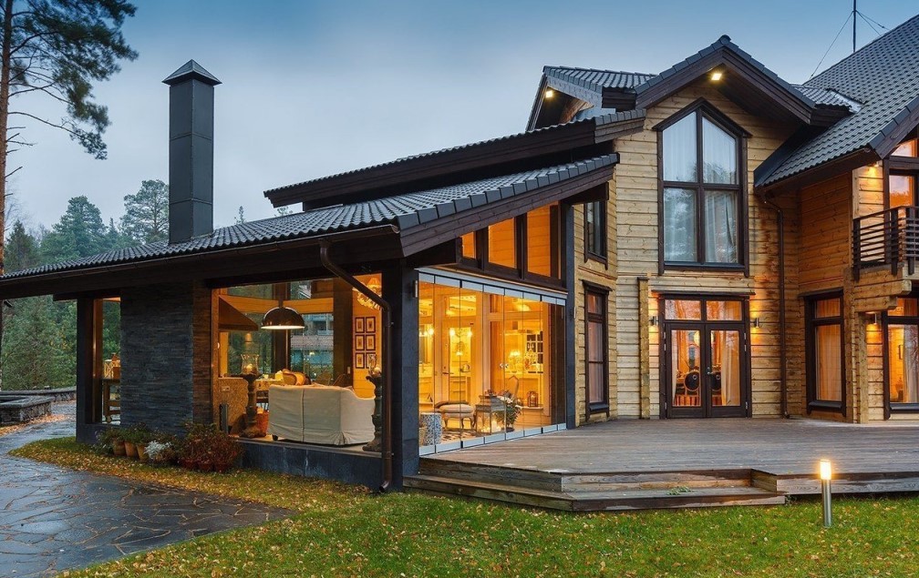Главная особенность этого стиля - несущие балки из темного дерева, которые традиционно не скрывают облицовкой, что зрительно расчерчивает светлые стены из дерева или стекла на сегменты.